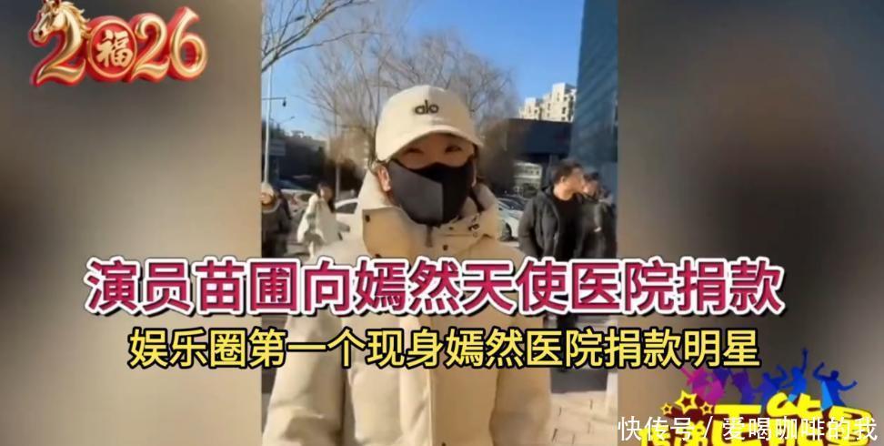 不是红毯装扮,不是活动造型,一件白色的长款羽绒服,黑色口罩,帽子压得很低,整个人裹得严严实实,站在嫣然天使儿童医院门口。